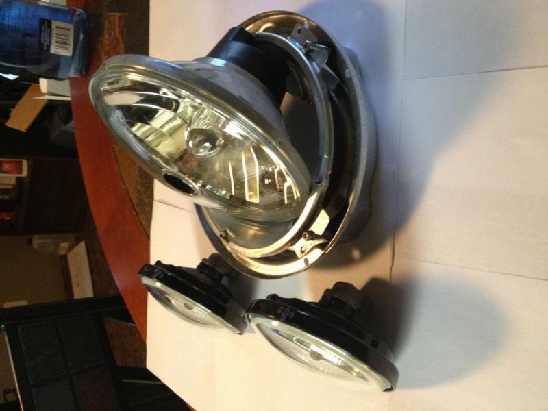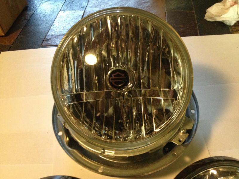 You are bidding on a set of stock lights off a 2012 Harley Davidson touring bike. It is used and is in excellent condition. It includes Headlight and Both Passing Lamp BULBS. The frame for the headlight is included but not the ring to secure the bulb to the frame. You can purchase it from your local friendly Harley Dealer. Any question feel free to ask. Thanks and Happy Bidding.