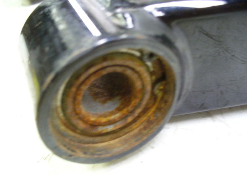 The swingarm has some scratches on both sides, see photos. The width at the axle is 12" wide. The axle opening is 1", the axle is not included. The pivot point is 5 5/16" wide. The bearings on one side are rusty and missing from the other side, see photos. Good to fair condition. Z1F3201 ATTENTION!! IF FREE SHIPPING IS CHECKED, THIS APPLIES TO THE LOWER 48 STATES AND DOES NOT INCLUDE ALASKA, HAWAII, PUERTO RICO OR INTERNATIONAL. WE SOMETIMES SELL USED AND SALVAGED PARTS! The prices of our parts may be less because of their condition. Please contact us if you have any issues before leaving feedback. ALL INTERNATIONAL BIDDERS MUST CHECK YOUR SIZE RESTRICTIONS BEFORE BIDDING. AUSTRALIA, MEXICO, SINGAPORE, & OTHERS WITH A 79 INCH SIZE RESTRICTION MAY NOT BID ON TANKS, SEATS OR FAIRINGS. PLEASE ask the manufacturer and/or a professional mechanic/technician about what will fit your specific make and model. Please ask ANY and ALL questions BEFORE you bid. If I do not respond, that means your answer is right here in the listing already. There is a 25% restocking fee on any returns or unpaid items. Buyer pays all shipping cost ,Ohio residents also pay 6.5 sales tax. Includes only what is shown in photo(s). Thank you and good luck !! |