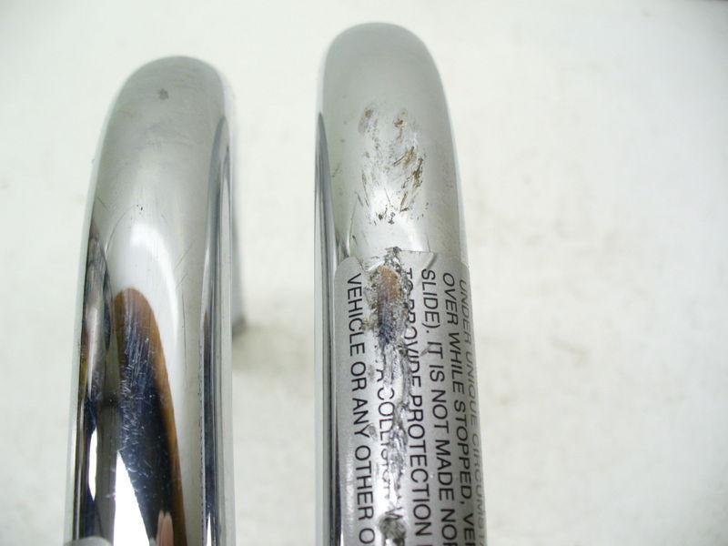 Harley 08 Up FLHTC Touring Rear Guards. Both guards have grinds on the bottom corners and one has some on the side, see photos. The guards have holes for saddlebag side rails, not included. Fair to poor condition XYN8434Q WE SOMETIMES SELL USED AND SALVAGED PARTS! The prices of our parts may be less because of their condition. Please contact us if you have any issues before leaving feedback. All international bidders must check your size restrictions before bidding. Australia, Mexico, Singapore & others with a 79 inch restriction may not bid on tanks, seats & fairings. PLEASE ask the manufacturer and/or a professional mechanic/technician about what will fit your specific make and model. Please ask ANY and ALL questions BEFORE you bid. If I do not respond, that means your answer is right here in the listing already. There is a 25% restocking fee on any returns or unpaid items. Buyer pays all shipping cost ,Ohio residents also pay 6.25 sales tax. Includes only what is shown in photo(s). Thank you and good luck !! |