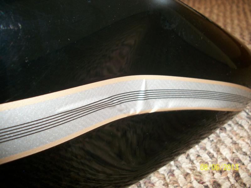 This tank was removed from a 2003 100th Anniversary Softail Duece. It has a dent on the side towards the rear. The tank also has some minor scratches from use. The anniversary stripe is in excellent overall condition with the exception of being a little pucker or tear that could be fixed & clearcoated. The dent is fixable & can be easily reached at from the tank opening. The paint is not cracked where dented. Obviously the emblems are no longer on the tank. Any questions let me know. Thanks for looking.