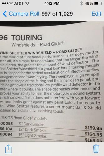 Harley Davidson 15" Light Smoke Wind Splitter Road Glide Windshield on 2040-parts.com