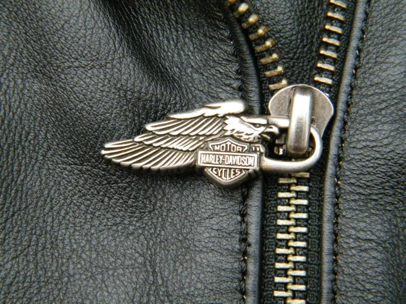 Genuine Harley-Davidson Black Leather Motorcycle Jacket This premium leather jacket is loaded with features such as nickel plated studs, Harley-Davidson zipper pulls, HD snaps, Harley-Davidson logo embroidered on the lower back and plenty of pockets. Even has a zippered pocket on the right sleeve. The main zipper is a double-acting zipper that can be unzipped up from the bottom to add comfort while you're in the seated position. Very good condition with no pinholes or scratches. All zippers and snaps work properly. Comes from a smoke free/pet free home. Ladies size small. Measures 18" from armpit to armpit, 17" from shoulder seam to shoulder seam and 23" down the arms. Shipping will be actual cost with no hidden packaging or handling fees. Please view my other listings for additional styles of genuine Harley jackets. Thanks for looking!