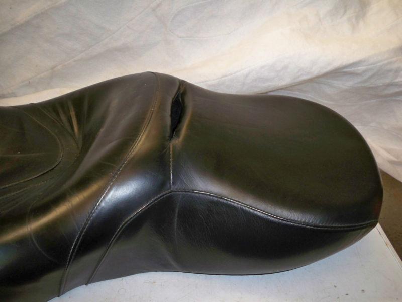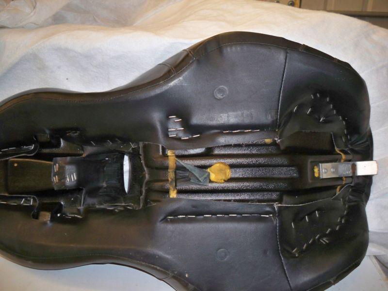Custom seat HD seat. Seat was rebuilt by Ramon's custom leather, with double padding Seat new $325.00 Rework a extrs $350.00 seat in very good condition. One worn spot where seat meets the tank, I have added that pic .He rubbed the seat down with leather softener often, Bike garage kept Im selling for a PC shy friend, Thats all I know, If you got questions ,ask Ill call him ,and get answers. Thanks