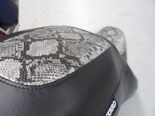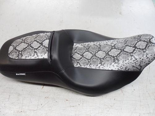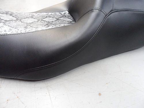This Auction is for seat COVER ONLY. the seat was removed from a 2011 street glide (I believe this seat fits 2011 up). Part number is 52320-11 .The bottom of the seat says LOW, so i am guessing it is a low profile seat ... make sure yours is the same. The Picture of the all black seat is the original (MAKE SURE YOU HAVE THE EXACT SAME SEAT IN ORDER FOR THE COVER TO FIT). It is custom made and an exact fit for this seat as you can see from the pictures. Made with top grade vinyl that will withstand years of weather and use. This material is far superior to stock materials use on seat covers. At this price it sure beats buying a new seat when you can completely change the look with a custom cover. This particular cover was done in black side panels with a contrasting Python Skin Main panel. These are hands down the best quality covers on the net. Each one hand cut from oem patters. If you are not 100% satisfied with this item, I will gladly do a return and refund for you.... minus any shipping costs to return the item. Easy installation.... Just take off your old cover by removing the staples. Pull new cover on seat and staple in place. (I use a heat gun or hair dryer to help stretch material in place while stapling for a better fit).