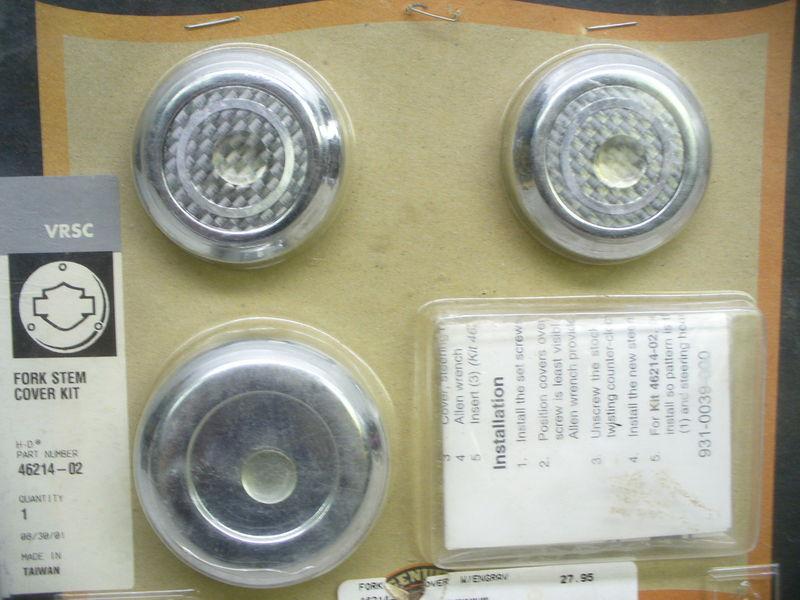 Harley/VRSCA fork stem cover kit,#46214-02. New old stock! (Z3Y669 ) WE SOMETIMES SELL USED AND SALVAGED PARTS! The prices of our parts may be less because of their condition. Please contact us if you have any issues before leaving feedback. All international bidders must check your size restrictions before bidding. Australia, Mexico, Singapore & others with a 79 inch restriction may not bid on tanks, seats & fairings. PLEASE ask the manufacturer and/or a professional mechanic/technician about what will fit your specific make and model. Please ask ANY and ALL questions BEFORE you bid. If I do not respond, that means your answer is right here in the listing already. There is a 25% restocking fee on any returns or unpaid items. Buyer pays all shipping cost ,Ohio residents also pay 6.25 sales tax. Includes only what is shown in photo(s). Thank you and good luck !! |