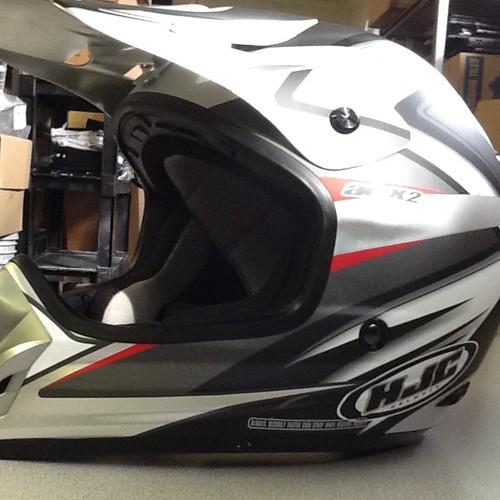 This is a great fitting helmet. HJC AC-X2 in large. Normal scratches from use. Pads are in good shape.