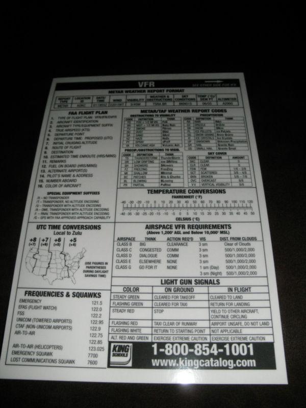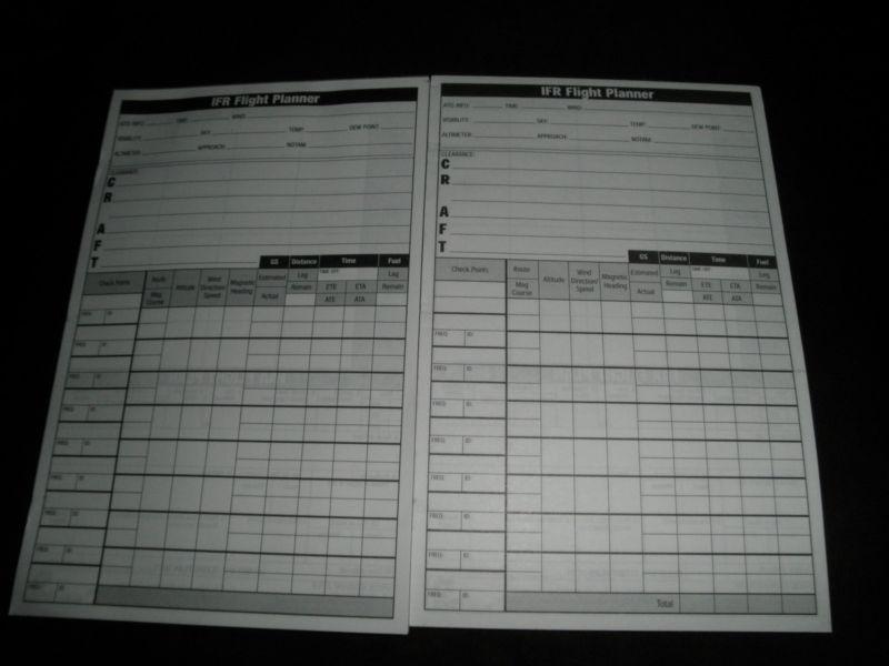 Up for bid is are two used IFR Flight Organizer three ring notebooks by Cessna (they each measure 7" X 9"). Also included are two used IFR Flight Planner paper pads and one used FLYWRITE notepad. I do not know how much paper is missing. A laminated Metar Weather Report Format reference card. What you see is what you get. You will get the three note pads, the two notebooks and the weather card seen in the first photo. The remainder of the photos are close ups of the same items.