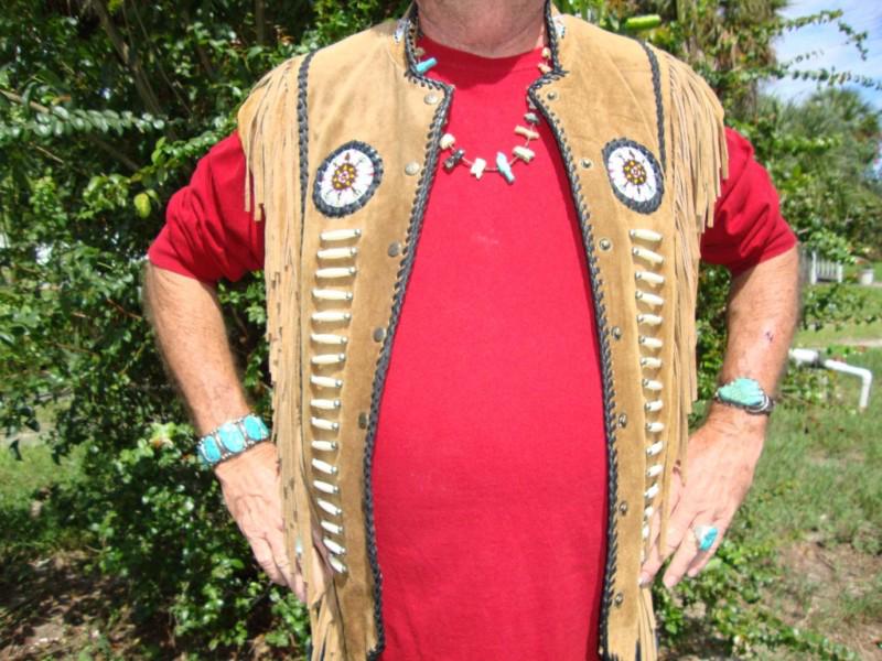 Indian Leather Vest, Suede, Fringed & Beaded on 2040-parts.com