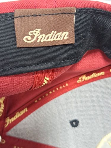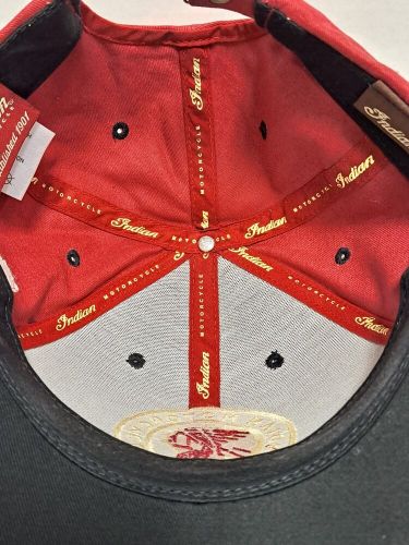 Indian Motorcycle 1901 Circle Patch Hat, Red & Black Strap Back Cap Clean on 2040-parts.com
