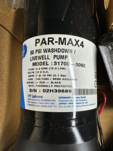 Jabsco Par-max4 ~ 4.3 Gpm Washdown Livewell Pump Kit 50 Psi ~ New 31700-0092 on 2040-parts.com