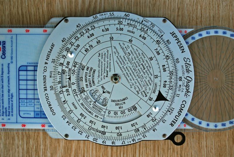 Used Jeppesen CSG-2A flight computer with brown leather case
