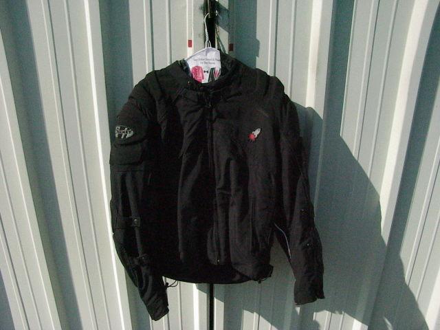 This is a new Joe Rocket Alter Ego riding suit, jacket and pants. 'Large' size, for men, jacket is black/black, pants are black/gray. Manufacturer's part# is JRV554-1004 for the pants and JRF451-5004 for the jacket. Bought new but unused, freshly laundered and ready to wear. All tags included.
