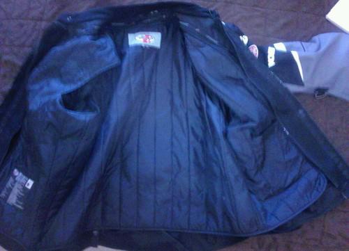 This jacket is in great condition. It has all 5 safety pads n the vest in side.