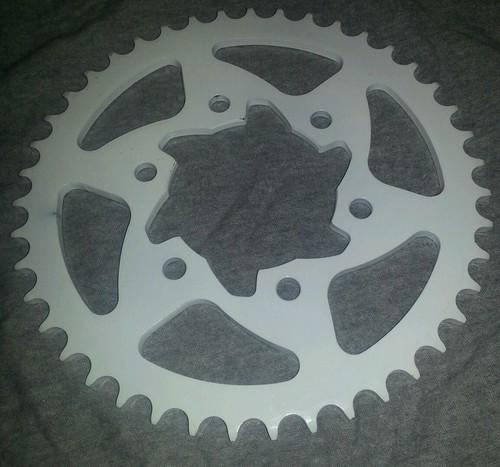 Item was powder coated white gloss. item was bought new and coated right after but never installed ,may have light scraches.