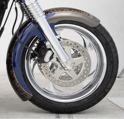Klock Werks design team has taken the guess work out of tire-hugging fender styles. Show off those wheels! Klock Werks Tire Hugger Series Front fenders are thick enough to add rigidity to the front end by acting like a fork brace, but can still be cut or shaped enough for an even more Kustom appearance. Fenders are stamped steel, not spun, and e-coated for the ultimate smooth, long lasting fender. We even offer an Uncut version so you can design your own, but the tabs are already there and predrilled. Cut your own profile, without worrying about it fitting! Installation requires use of Klock Werks Tire Hugger Front Fender Mounting Blocks (sold seperately).