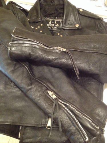Tannery west black heavy-soft leather motorcycle jacket, mens xlrg.(US $59.99)