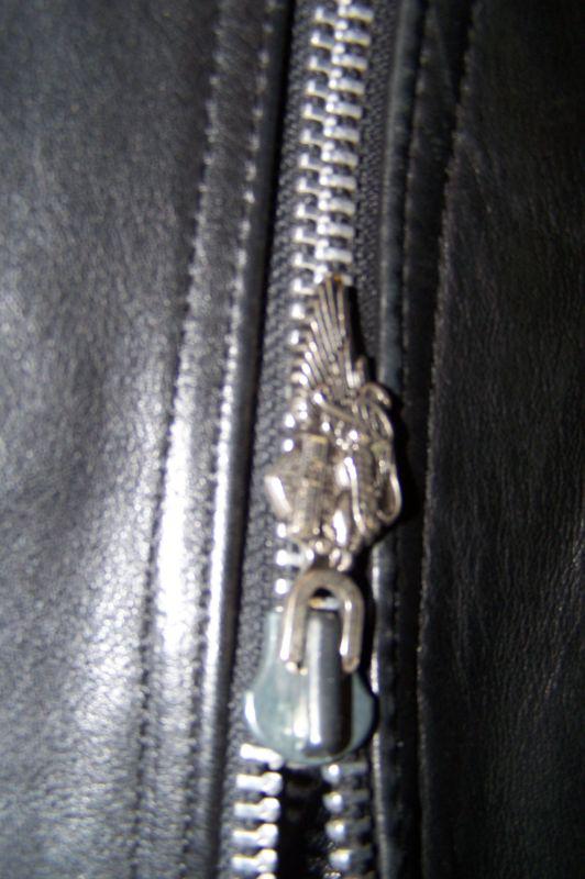 NICE GENUINE LEATHER HARLEY DAVIDSON WOMEN'S JACKET. This is really awesome..thick nice black leather great chrome snap tops , heavy duty zippered sleeves and front as well..belted at the base ..32/4 Women's size..really great over all condition..we don't think its ever been worn.