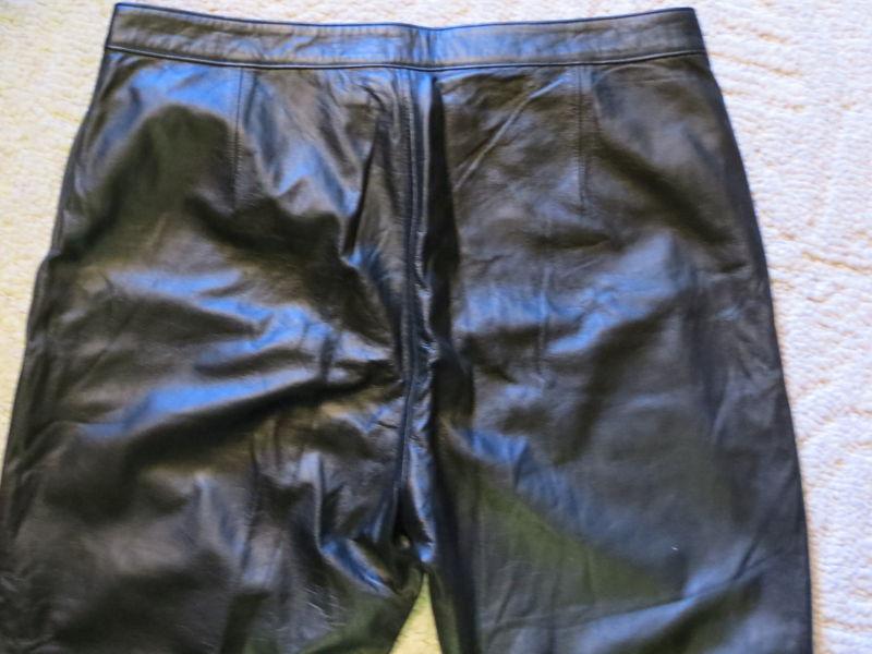 Genuine Harley-Davidson Motor Clothes ladies' leather pants. Size 14 (42 European size). Waist 34", hips 46", inseam 28". They are fully lined in polyester and are incredibly soft and supple. The leather feels like butter. One pocket at left waistline for cell or cigarettes. Snap front, zip fly. The bottoms were cut to fit a short lady, thus the 28" inseam. The edge is raw, not hemmed, and is a smooth cut. There is nothing like a pair of leather pants to cut the raw winter wind when riding in cold weather. These normally sell for many times the opening bid and would be a great bargain for a sweet small statured lady. AUCTION TERMS -- PLEASE READ BEFORE BIDDING! Paypal payment is to be made within three days of the auction ending. Postage is calculated based on package weight and your zip code, and we offer a choice of shipping methods whenever possible. We will gladly combine postage for multiple auction wins. We will ship within two business days of receiving payment. This item comes from a mostly clean, non-smoking home. We live with two ornery cats and there is a chance that a stray cat hair may unintentionally find its way inside your package, in case this may be an issue for anyone. Thanks for looking at our auctions, and God Bless America! |