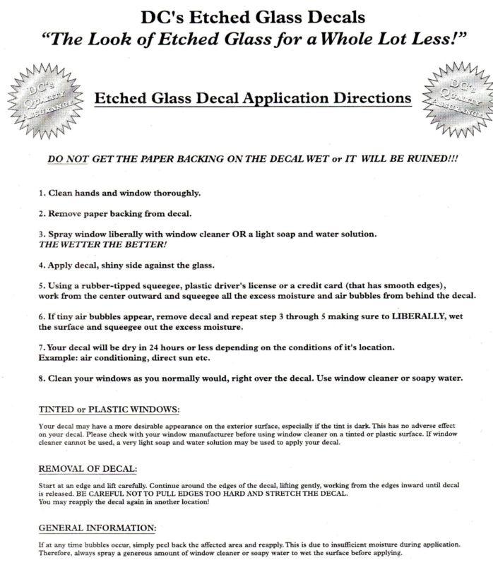 NICE 8x10 DECAL IN ETCHED GLASS LOOK OF HOWLING WOLF... OPENED BUT NOT USED.. FULL DIRECTIONS...