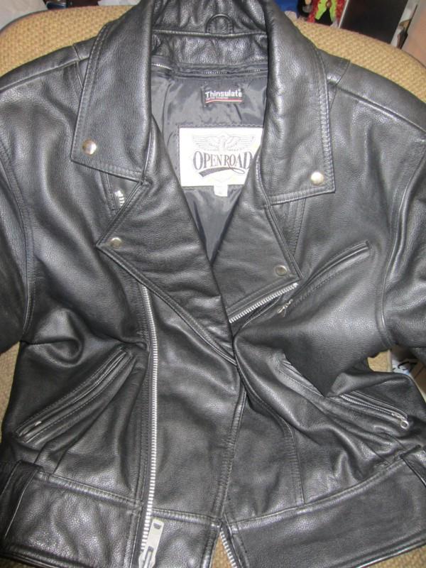 Leather Thinsulate Motorcycle Jacket Open Road Classic Black Heavy Sz 40 Medium on 2040-parts.com
