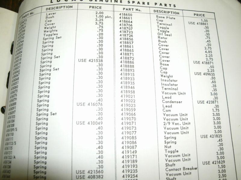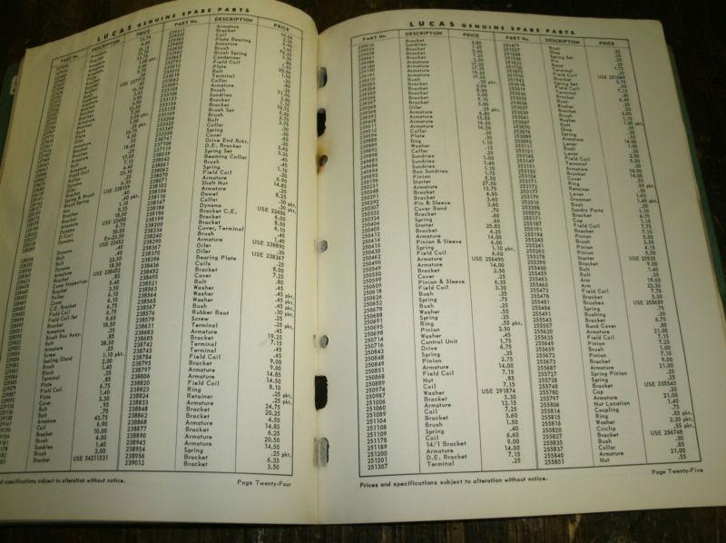 Lucas Master Price List.