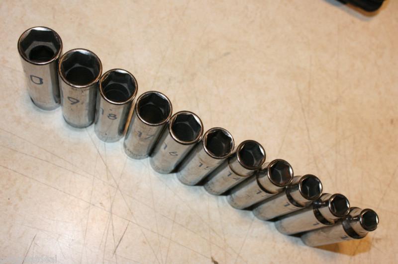 Snap-on tools 1/4"drive deep metric 6-p socket set +tray 12pcs 5-15mm (US $199.00)