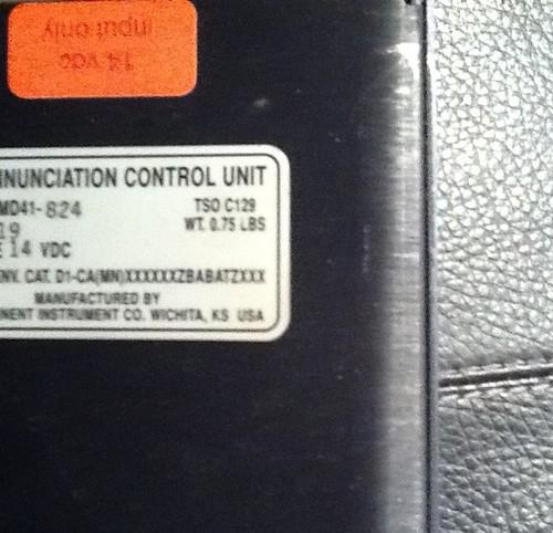 GPS ANNUNCIATION CONTROL UNIT FOR GPS MODEL MD41-824 14 VOLTS TSO 129 .0.75 lbs SN 3819