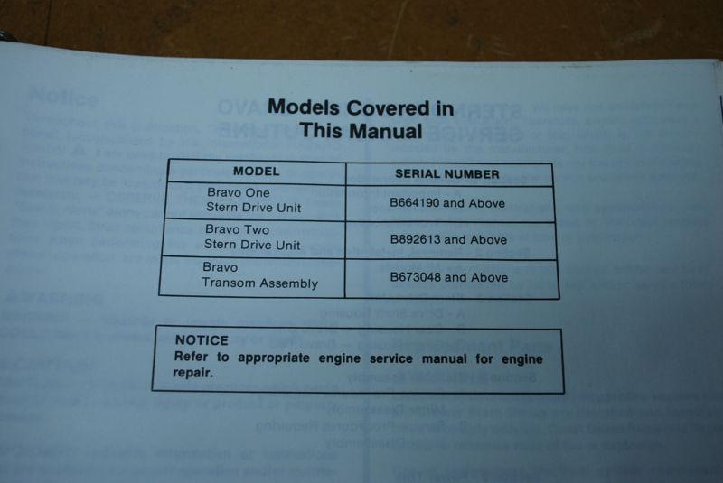 Used Mercruiser Sterndrive Service Manual. Covers Bravo models. Looseleaf version with plastic cover in good condition - see pictures for more information.