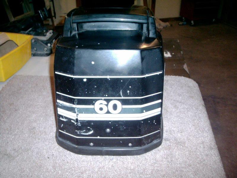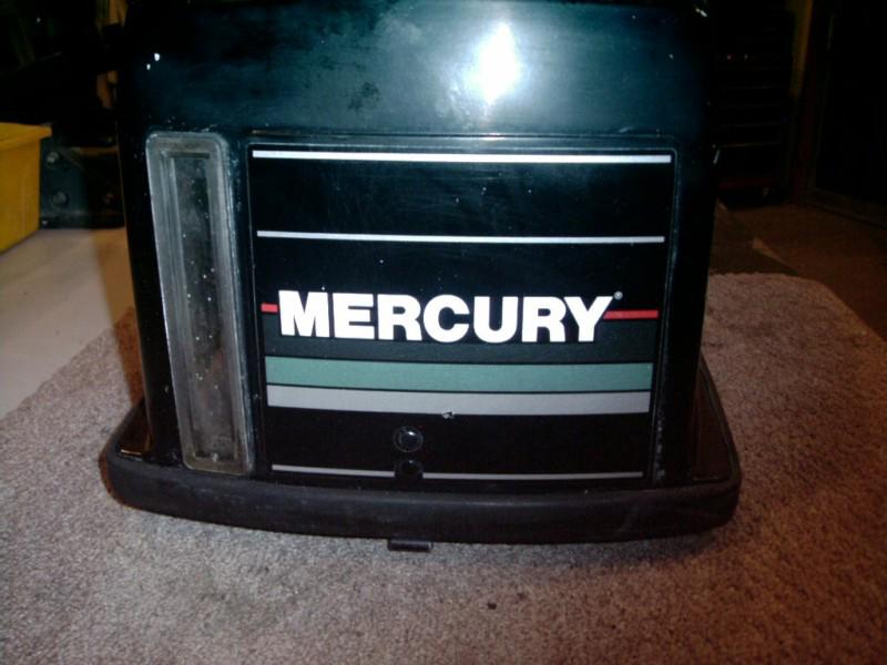 Featured is a used, in good solid condition, Motor Cover or as Mercury calls it "Top Cowl" for a Mercury 60hp, 3 cylinder, 2 cycle, outboard motor. It is black and complete with decals, air inlet handle and all latch parts. This part has the number PN/4000-813010 molded into the underside of it. The ser# of the motor that this part came off of is 0D112525 and it is a 1992 model. This part probably will fit several other models, but I do not know which ones. If you are using on a different size / model / year, please research this before bidding. We will be listing many more parts for this motor. The finish on this cover is not real shiny, but it is very solid with no cracks or big gouges. Decals are not perfect and the inside has foam lining. Please look at photos as I tried to show cover from every side. retail on this cover without decals is $685.33 and most places online are asking around $550.00 new. This is a big fairly heavy part so packaging and shipping by FedEx is $35.00.