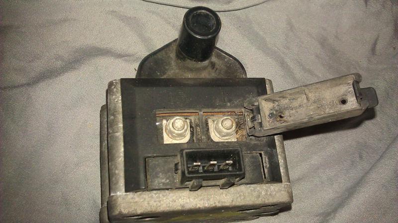 Ignition coil taken off a 95 Volkswagen Jetta in good running condition. This is the older style of ignition coil that came on the OBD1 VWs. Even though it's old, it's still in spec and should be a good, inexpensive replacement.