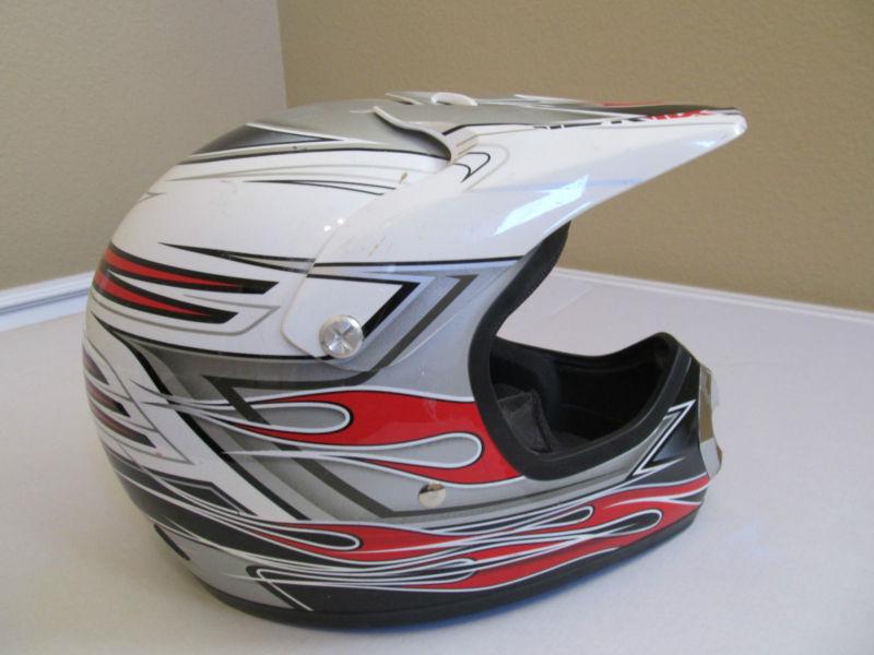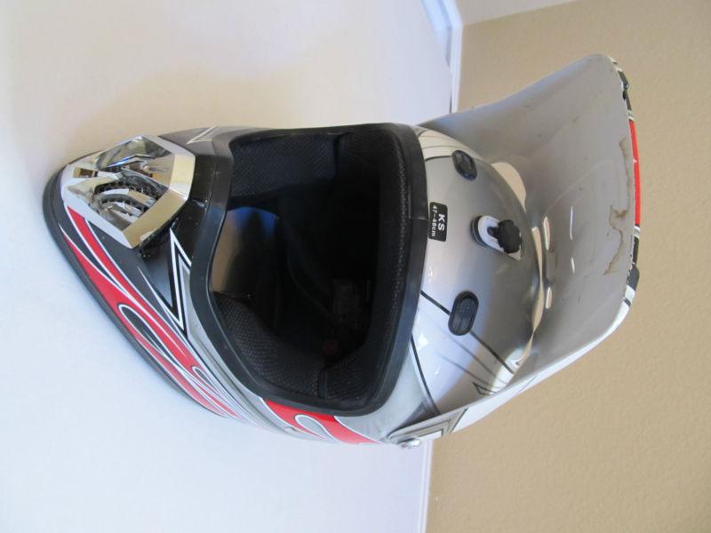 You are bidding on a preowned but in excellent condition, MSR MX Youth small motorcycle helmet. It is multicolored red primarily. It is Red Dot Approved.