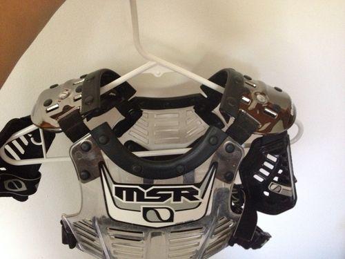 I have a used youth MSR Peewee barrier chest protector. I would say its a good fit for those 4-6 year old riders. My son had outgrown it. Still in decent condition with a few scuffs. To be expected with used motocross gear. Everything is intact and works properly. Clean, smoke-free, pet-free home. I will ship within 1-2 days of payment