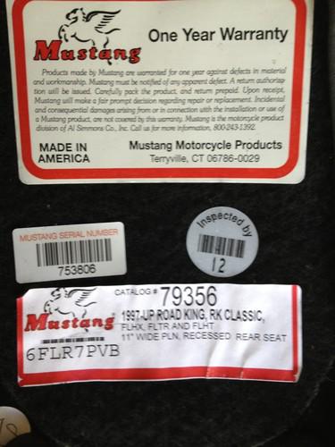 Great condition. Mustang solo seat with driver backrest. 11 inch extra large pillion pad. Very comfortable seat. Paid $700.00 for it. Had it for 2yrs. Took pics of bikes it fits. I have a 2006 electraglide classic.fits 1997-2007.