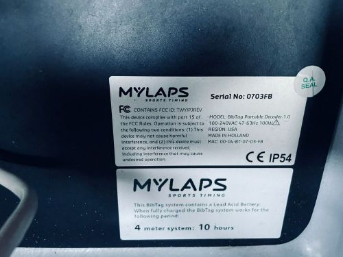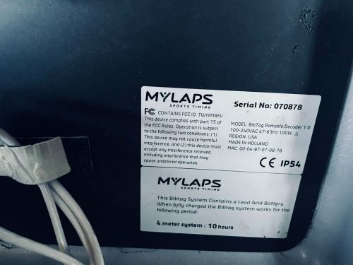 Mylaps Bibtag Portable Decoder 100-240vac 47-63hz Need Change Battery on 2040-parts.com