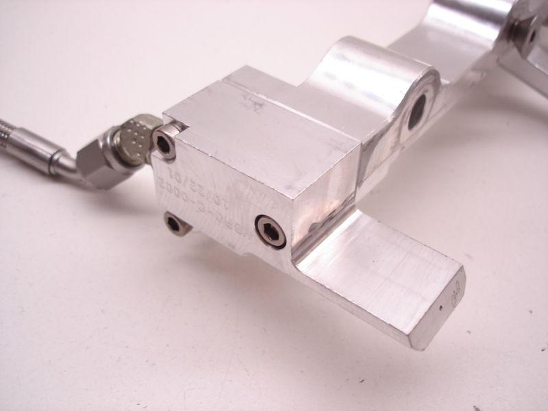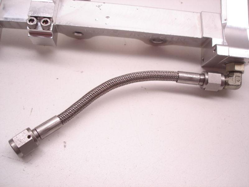YOU ARE BIDDING ON A NICE MATCHED PAIR OF ALUMINUM WRIST PIN OILERS FROM A LEADING SPRINT CUP TEAM. THESE ARE PART #'S HBPO-LSMB & HBPO-RSMB, WHICH IS A RIGHT AND LEFT. THESE ARE FOR SMALL BLOCK CHEVY AND SB2 BLOCKS. BOLTS INTO THE UNDERSIDE OF THE OIL PAN RAILS AND PLUMBED THRU THE INCLUDED -4an STAINLESS LINES THRU A JUNCTION AT THE FRONT OF THE OIL PAN. IF YOU GOT A PAN THAT HAS THE 2 CHAMFERED HOLES ON THE PAN RAIL IT MAY BE SET UP FOR THESE OILERS OR YOU CAN DRILL THE PAN PAIL TO ADAPT THEM AND THEN DO THE PLUMBING WORK BY ADDING A -4an PORT ON THE FRONT. THESE ARE COMPLETE AND READY TO BE BOLTED IN. ONE OF THE PICTURES SHOWS A SET MOUNTED IN A STEFS STAINLESS STEEL OIL PAN. ~~THE OIL PAN PICTURED IS NOT INCLUDED IN THIS LISTING AS IT IS FOR REFERENCE ONLY~~ THESE ARE VERY TRICK AND THE OPENING BID IS A FRACTION OF NEW COST!