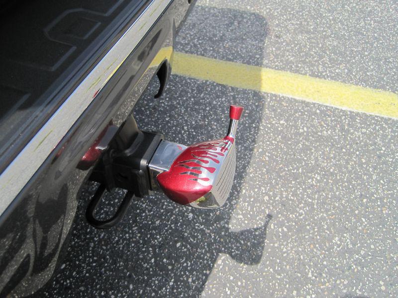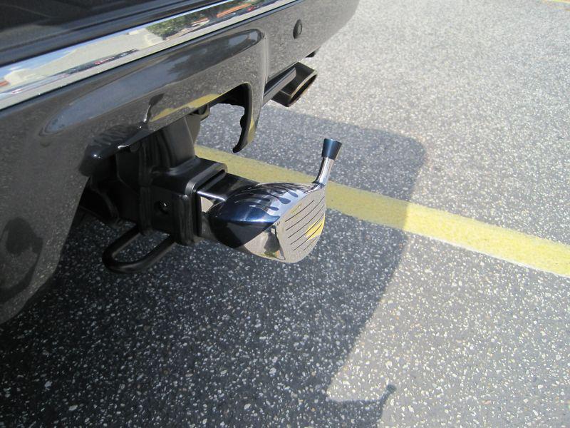 Make a personal statement of your favorite sport!!!!!! Eye catching unique golf driver head shape with flame on top Rust-free stainless steel construction with high polishing Prevent dirt and debris from entering your trailer hitch Extend bumper to your truck Driver head measures 5 ¼” x 2 ½” Fits 2” receiver style trailer hitches Pin lock is not included Great for Father's day present Please specify your favor color selection on order Colors: Chrome/ Red with flame on top Or Chrome/ Navy with flame on top