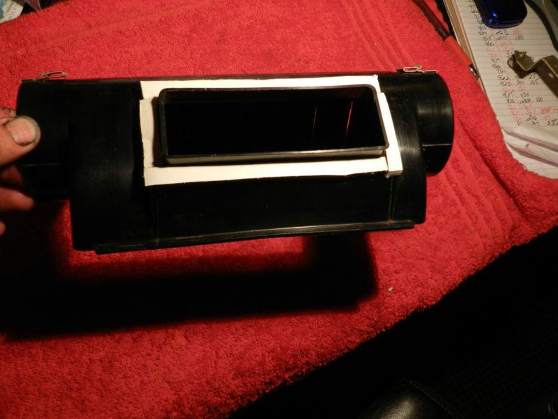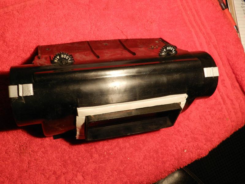 A/C HEATER CASE CENTER SUPPLY DUCT 68-69-70 ROADRUNNER/CHARGER/CORNET/GTX/BEE. I CLEANED THIS DUCT. GOES ONTO THE CENTER FEED HOLE ON THE CASE. THEN THE OTHER TUBES GO ON THIS AND THEN FEEDS THE CORNERS AND CENTER GRILLES. NO CRACKS OR SPLITS. NO SCRATCHES OR BREAKS. EVEN THE CLIPS THAT HOLD THE SIDE TUBES ARE THERE. I REPLACED THE FOAM TAPE. YOU NEED TO REMOVE THE PAPER BACKING WHEN YOU ARE READY TO INSTALL. THAT IS THE WHITE IN THE PICTURE. I POLISH THE PLASTIC AS BEST AS I CAN.