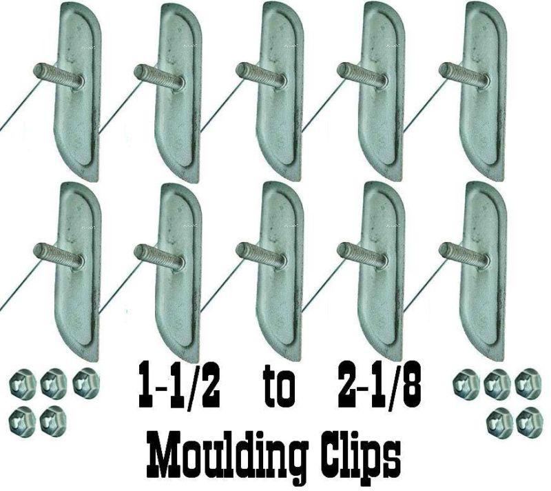 You are bidding on 10 new very hard to find 1-1/2" to 2-1/4" molding clips with nuts that will fit moldings up to 2-1/4" inches wide. They have a 2-1/2" long x 11/16" wide plate. MADE IN USA (Have more diferent size so please see my other items for sale or ask if you do not see!)