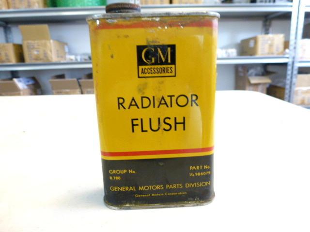 Here's a NOS Vintage GM Radiator Flush Can. S&H in US is $6.00 or $25.00 for overseas buyers. Thanks, and Good Luck