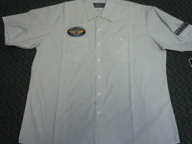 This auction is for a NWT VICTORY MOTORCYCLE PIT SHIRT BIKER MECHANIC SHOP POLARIS CREW SIZE SMALL or MEDIUM I have all of these sizes available..... Just let me know which size you need........White with tiny BLACK PINSTRIPED..... GREAT LOOKING SHIRT.... No refunds.... Please email me with questions.... No International buyers... Buyer must pay in 2 days.....