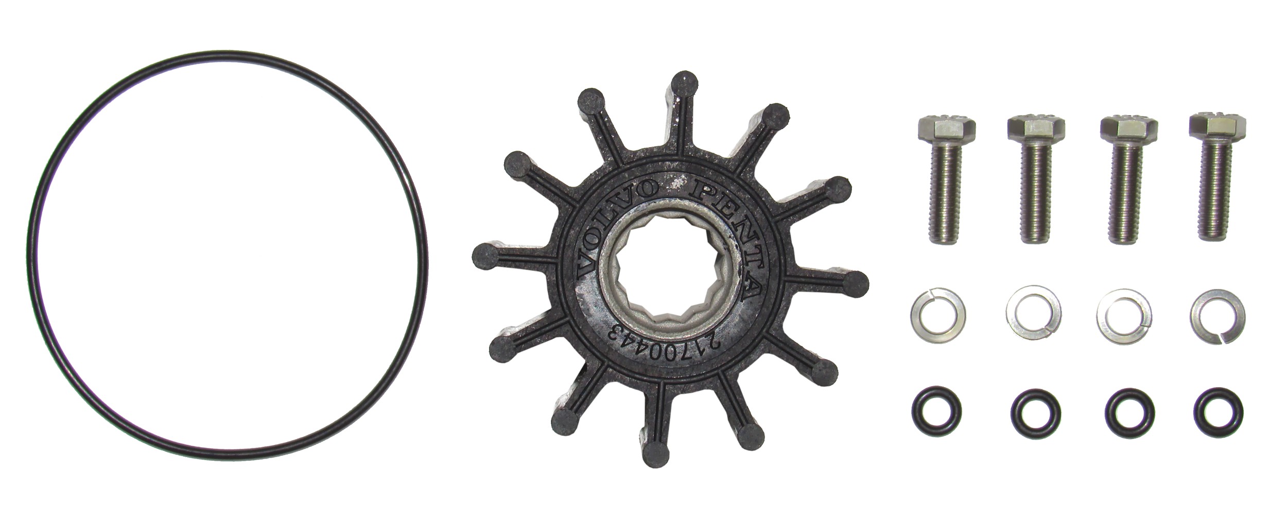 OEM Volvo Penta water pump impeller kit. Includes impeller, O-rings, and hardware. For use with Volvo V8-350C-D, V8-350-CE-D, V8-380-C-A. V8-380-C-B, V8-380-C-D, V8-380-CE-A, and V8-380-CE-D. Item Sku - VOL21700445