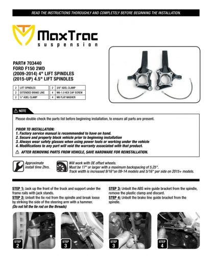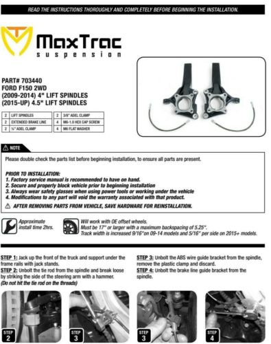 Open box front 4.5" lift spindles maxtrac 703440 for 2015-20 ford f150 2wd truck(US $681.78)