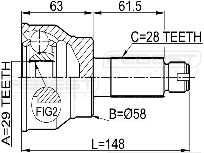 Outer Cv Joint 29x58x28 - Febest # 0710-037 on 2040-parts.com