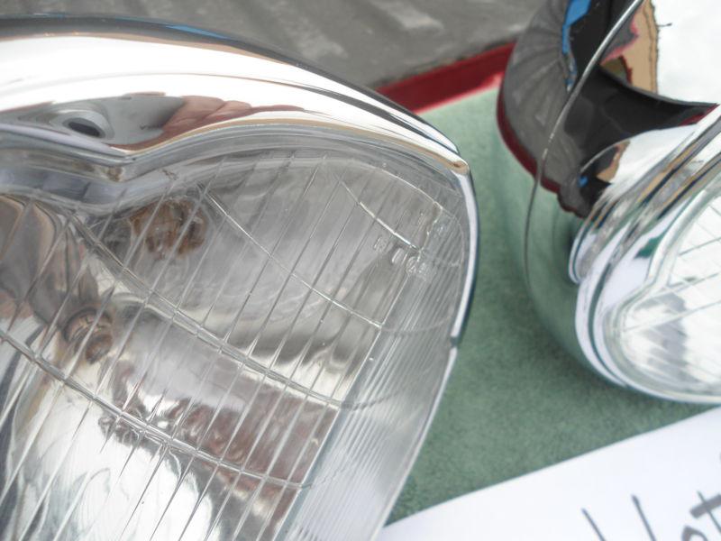 Offered for sale is a beautiful set of Packard 6 volt headlights with built in parking lights. Depressed beam. Both lenses are new and marked right side. You can also order these lights in 12 volt. Call for availability. Call Richard Blomquist at White Glove Collection with any questions 608-780-8229. VISA or MasterCard Preferred. *International shipping is offered and cost is based on location of buyer*