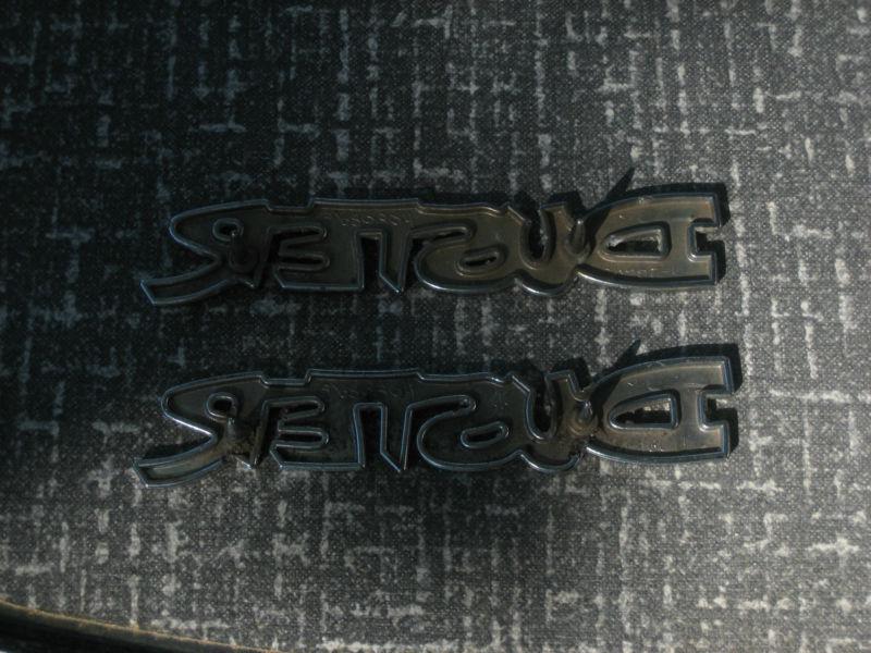 NICE PAIR OF SEVENTIES PLYMOUTH VALIANT / DUSTER QUARTER PANEL EMBLEMS. BETTER CONDITION FOR A USED PAIR, WITH LIGHT WEAR AND NO RUST. BOTH STUDS ON BOTH EMBLEMS AND I WILL ADD ANOTHER PICTURE SOON.GREAT FOR A DAILY DRIVER OR FOR FINISHING YOUR project car ! SOLD AT NO RESERVE AND WITH FREE USA SHIPPING BY FIRST CLASS MAIL ! CHECK MY OTHER AUCTIONS FOR MORE VINTAGE EMBLEMS THIS WEEK.............AND CHECK MY FEEDBACK TO BID SAFE!