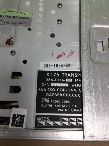 Bendix king kt 76a atc transponder w/tray p/n 066-1062-01(US $175.00)
