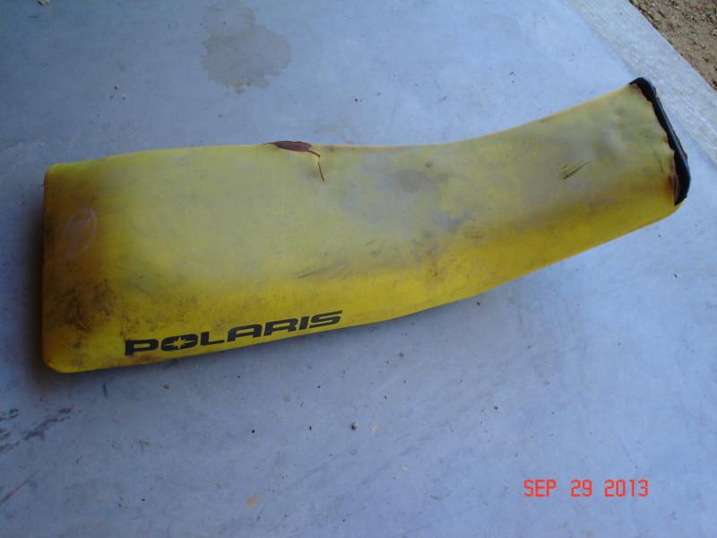 Used seat from a Polaris Trailblazer 4 wheeler. The seat pan and foam are in great shape but cover is torn at fron edge and one spot in middle as seen in pictures.