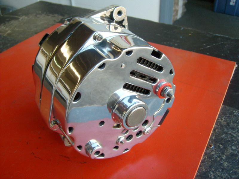 POLISHED CHEVY ALTERNATOR. 1 OR 3-WIRE HOOKUP. 12 VOLT 80 AMPS. FITS 1965-1985 CHEVY AND MOST OTHER G.M. CAR AND TRUCK APPLICATIONS. WORKS AS A 1 OR 3-WIRE HOOKUP ON 1970-1985 CHEVYS AND 1-WIRE HOOKUP ONLY ON 1965-1969 GM VEHICLES. 100% REMANUFACTURED AND LOAD TESTED. MANUFACTURED IN THE U.S.A.(not offshore) Contact us for all your Alternator and Starter needs.
