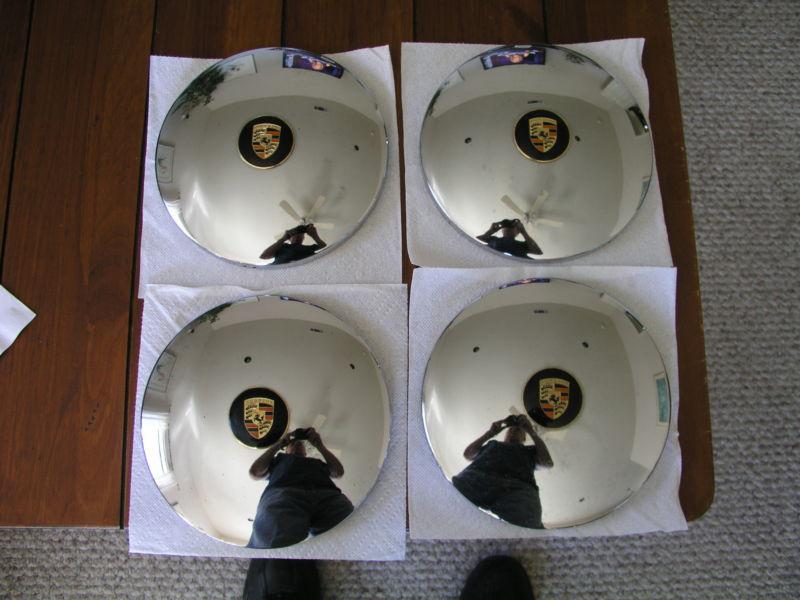 UP FOR BIDDING 4 PORSCHE EMBLEMS.COULD BE AFTER MARKET.THEY HAVE BEEN IN MY GARAGE FOR YEARS.THE EMBLEMS ARE ON HUB CAPS.THE INSIDE DIA.ON CAPS 9.5 IN.THE EMBLEMS ARE 2 1/4 IN.THE EMBLEMS CAN BE REMOVED 3 CLIPS.I WILL SHIP THE EMPLEMS FREE.IF YOU WANT THE HUB CAPS SHIPPING IS $12.00. ONE OF THE EMBLEMS HAS A CHIP ON THE ENAMEL. SOLD AS IS.ANY QUESTIONS PLEASE ASK.THANKS FOR LOOKING. AL. SAME PRICE WITH OR WITHOUT THE HUB CAPS EXCEPT SHIPPING.