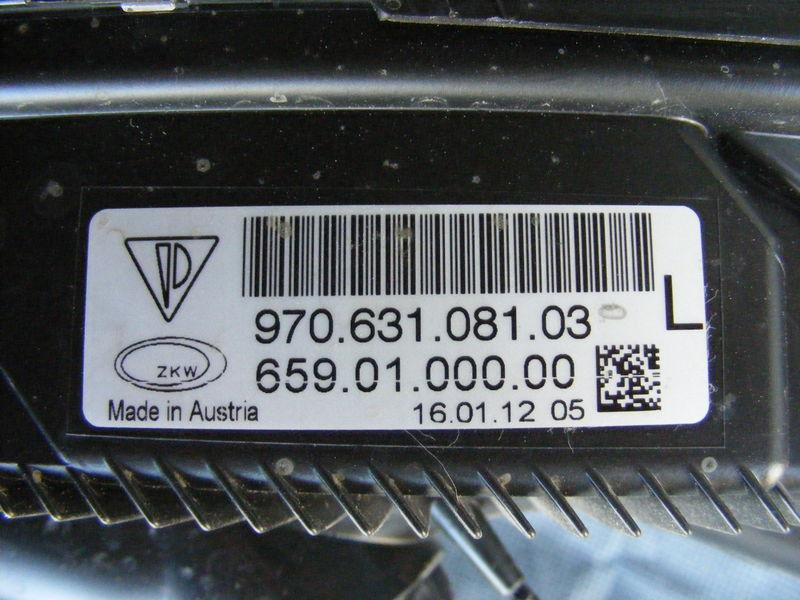 Porsche Panamera left factory LED driving light/blinker. This light is complete with bulbs. The lens is in perfect shape. The tub is in good shape with no broken or repaired parts. The inside looks to be in perfect condition. This came off a 2011 model with very low miles. Part # 970 631 081 03. Save $$$ here. As is sale. Will ship next day air at buyers cost if part is needed fast.